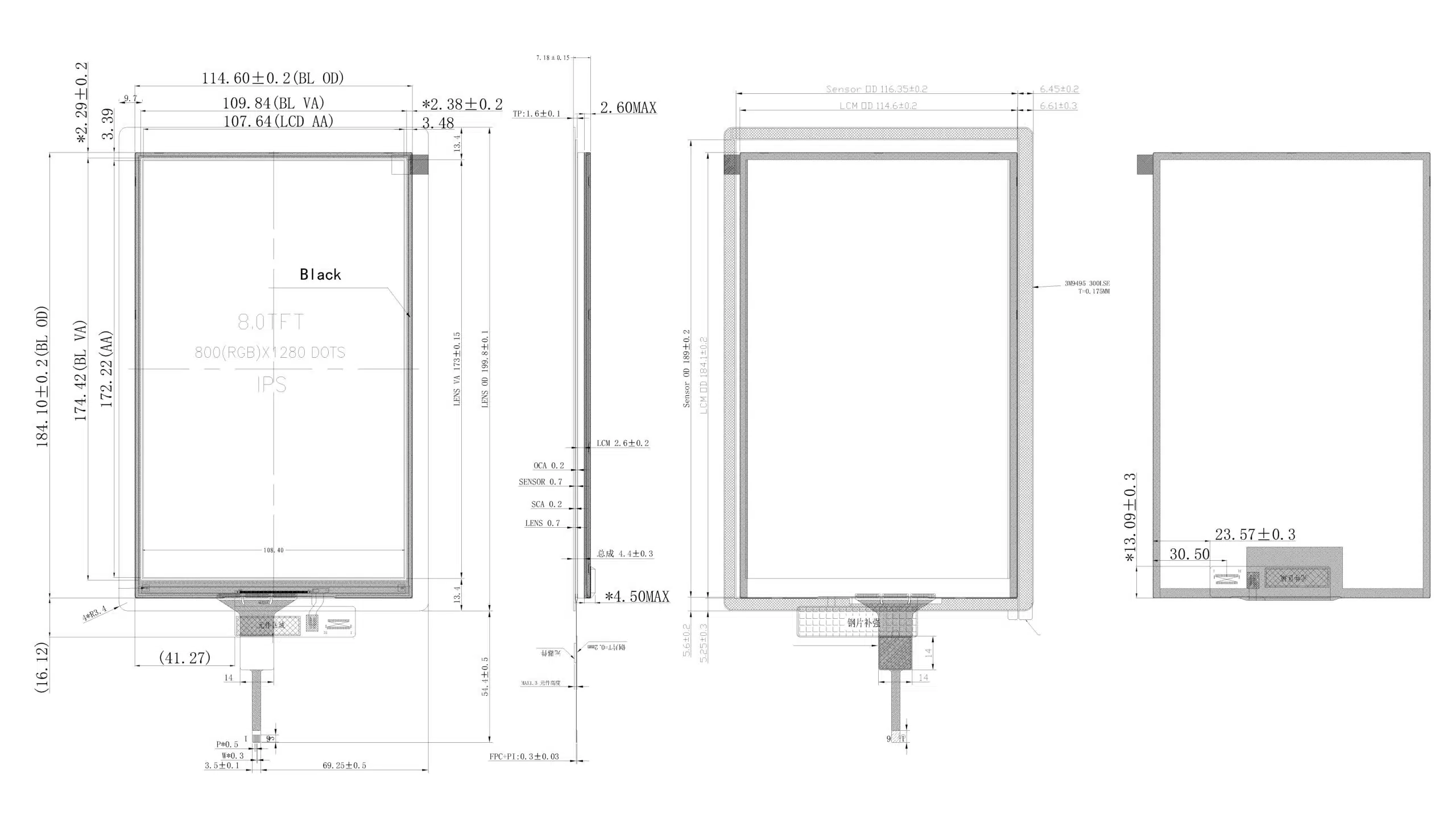 | LCM 차원 | 114.60(폭)* 184.10(높이) * 2.60(두께) | mm |